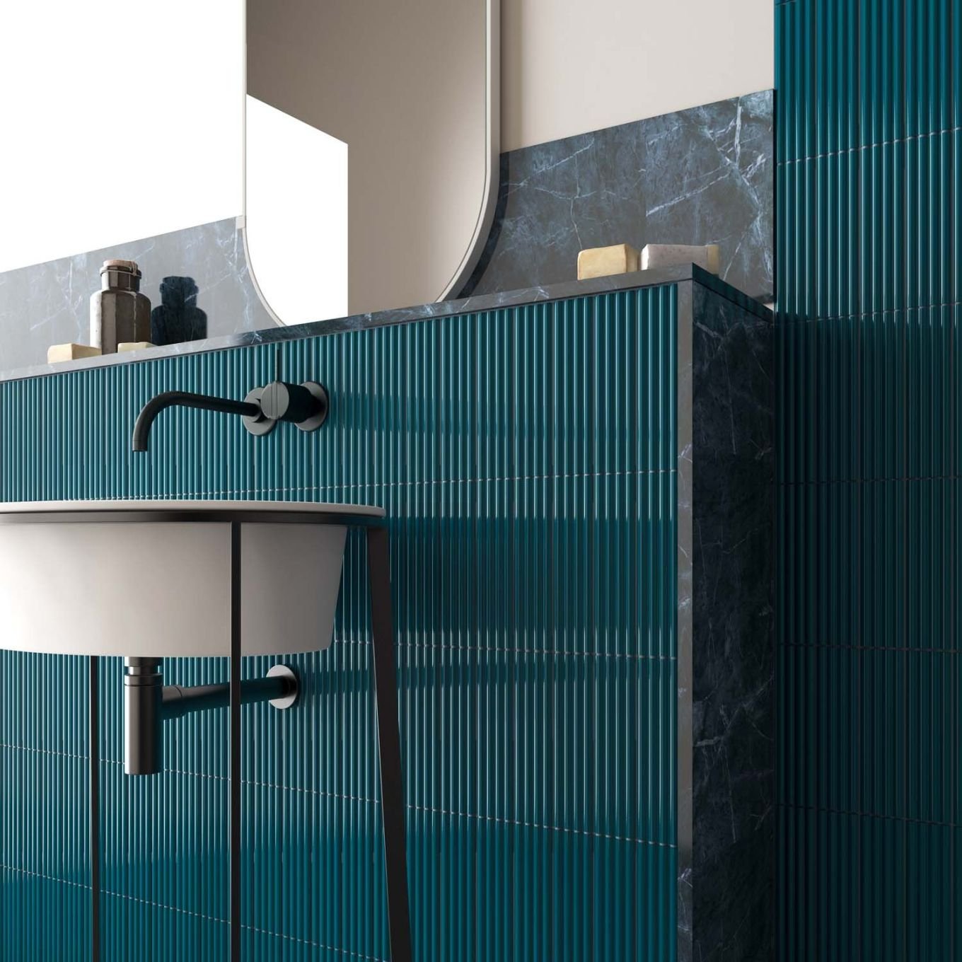 Exquisitely crafted these ribbed wall tiles take inspiration from Greek architecture, featuring a distinctive fluted surface, bringing a tactile style to the walls. This sophisticated brick tile exudes elegance, perfect for creating a luxurious aesthetic often found in most high-end homes and hotels.