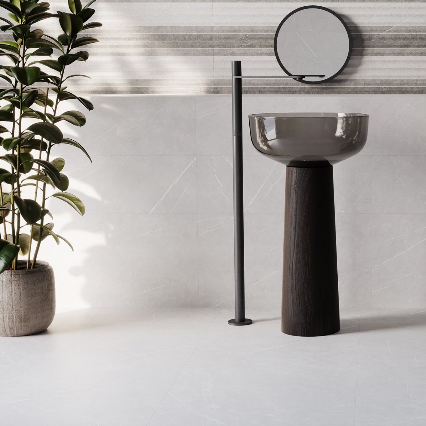 The Arcadia Light Grey Matt Porcelain Tile measures 600x1200mm and features a sleek matt finish, adding a touch of style to any space. Made from high quality porcelain, this tile is not only durable but also easy to maintain. With its rectified edges, it ensures a seamless installation, creating a seamless and polished look. Suitable for both walls and floors, this versatile stone effect tile is perfect for various design projects. With a thickness of 10.5mm, it offers stability and longevity, making it a reliable choice for any application.