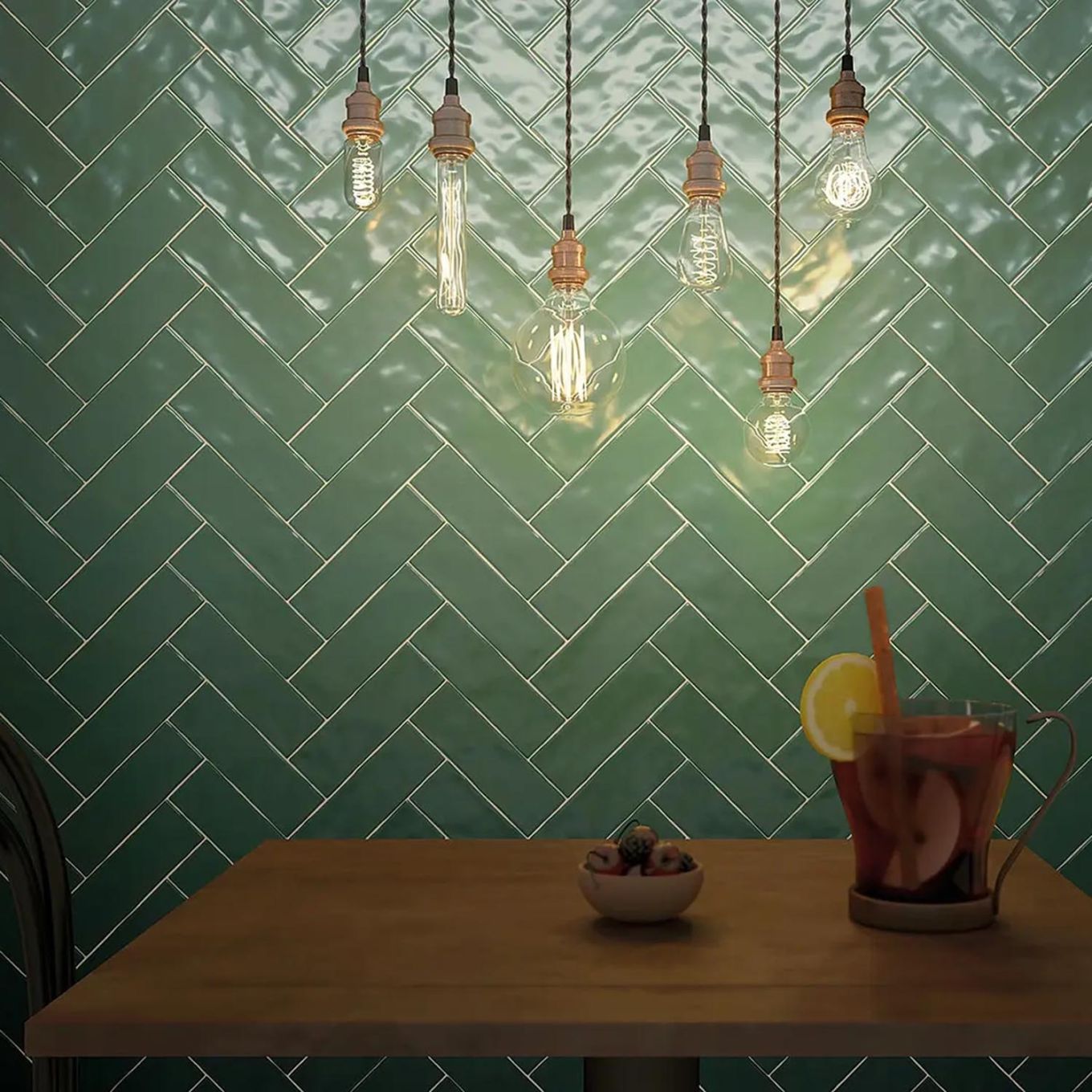 A trendy alternative to the standard subway tile, this green brick tile is sure to bring character and charm to any space.