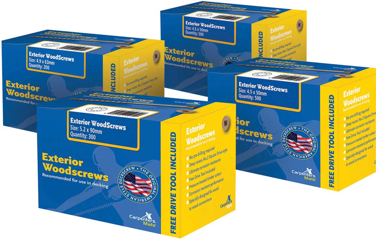 Carpenters Mate Deck Screws are a specially designed heavy-duty option that allows you to hold multiple timbers together in the most challenging of conditions. The screws are durable and thoroughly resistant to corrosion, allowing them to withstand the harshest conditions, making them perfect for outdoor use with decking, landscaping and roofing projects.