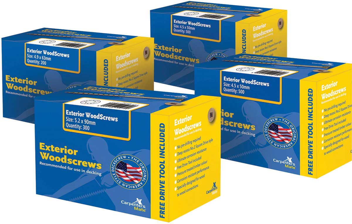 Carpenters Mate Deck Screws are a specially designed heavy-duty option that allows you to hold multiple timbers together in the most challenging of conditions. The screws are durable and thoroughly resistant to corrosion, allowing them to fight the elements, making them perfect for outdoor use with decking, landscaping and roofing projects.