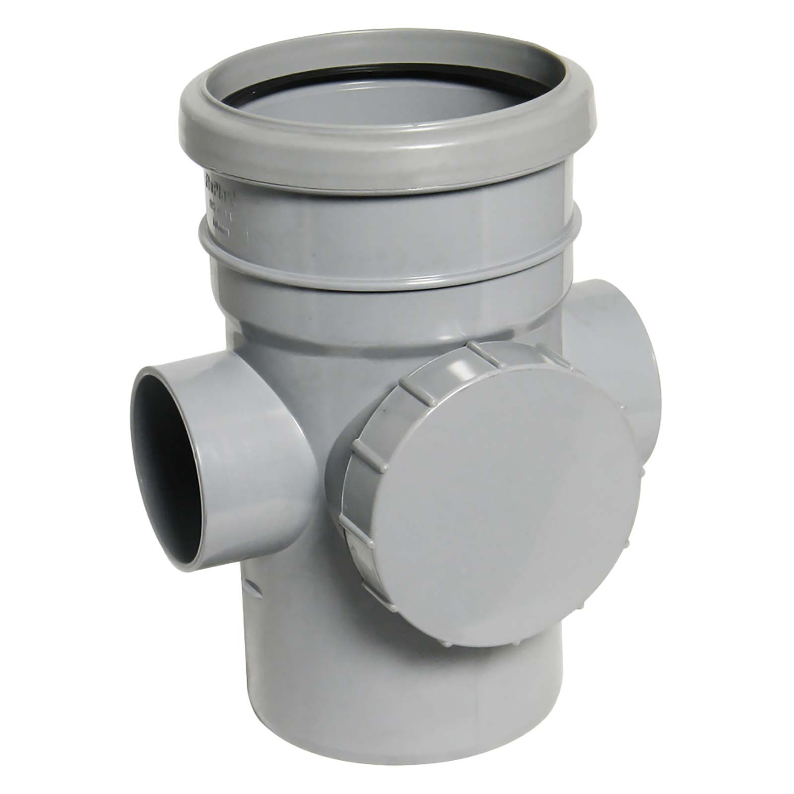 This FloPlast 110mm Grey Access Pipe Socket/Spigot allows access within the soil stack to enable easy testing, cleaning and maintenance of the soil system. The access has 2 closed side bosses which when drilled using a 50mm - 57mm hole cutter and boss adaptors are fitted will allow 32mm, 40mm and 50mm waste pipes to be connected to the soil stack.