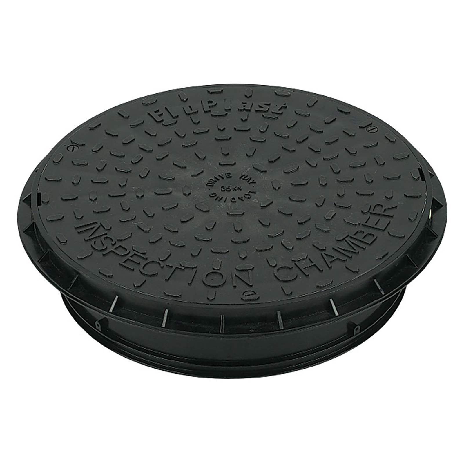 The FloPlast 450mm Black Plastic Drain Cover and Frame is for use on a 450mm inspection chamber with a screwed down lid. It can take loadings up to a maximum of 1.5kN (A15 rating). For use with inspection chambers up to 1.2mtr deep.