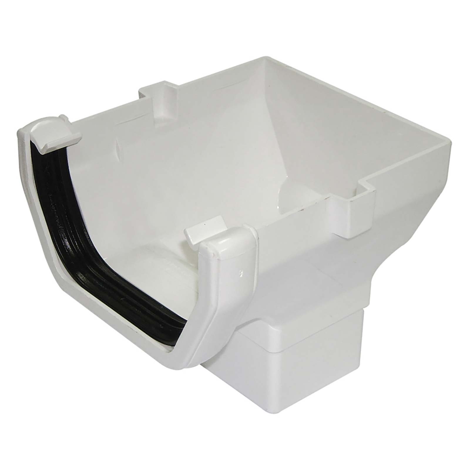 The 114mm White Square Line Gutter Stop End Outlet is used to provide an outlet for a 65mm Square downpipe from the gutter. The system offers a flow capacity in excess of half round gutter when removing rainwater from your roof. Suitable for new builds, house refurbishments, conservatories and extensions.