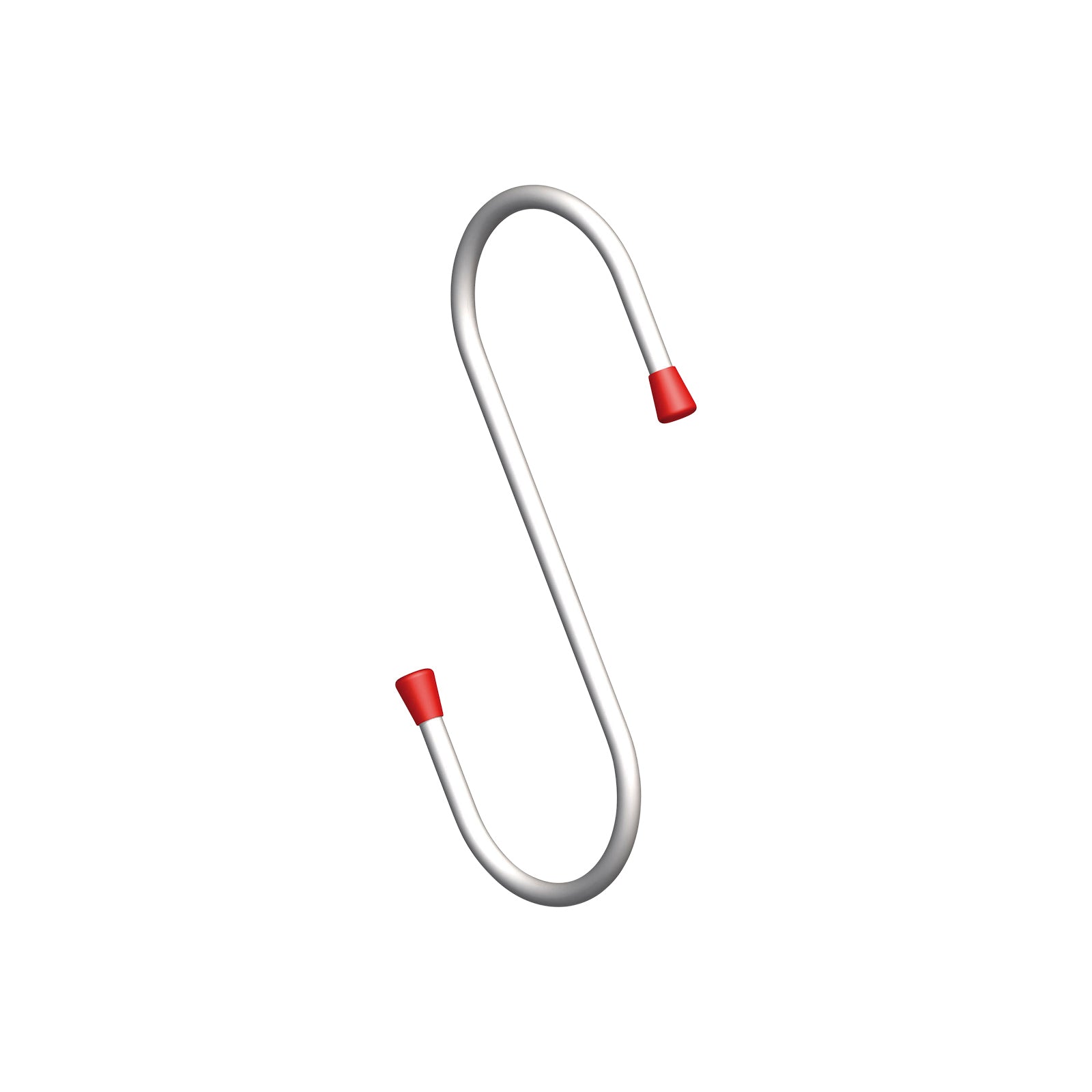 A Galvanised Steel Bucket Hook 180mm for easily storing items such as buckets safely off the ground. This steel 'S' shaped bucket hook has a protective red plastic end and a 20kg maximum load bearing.