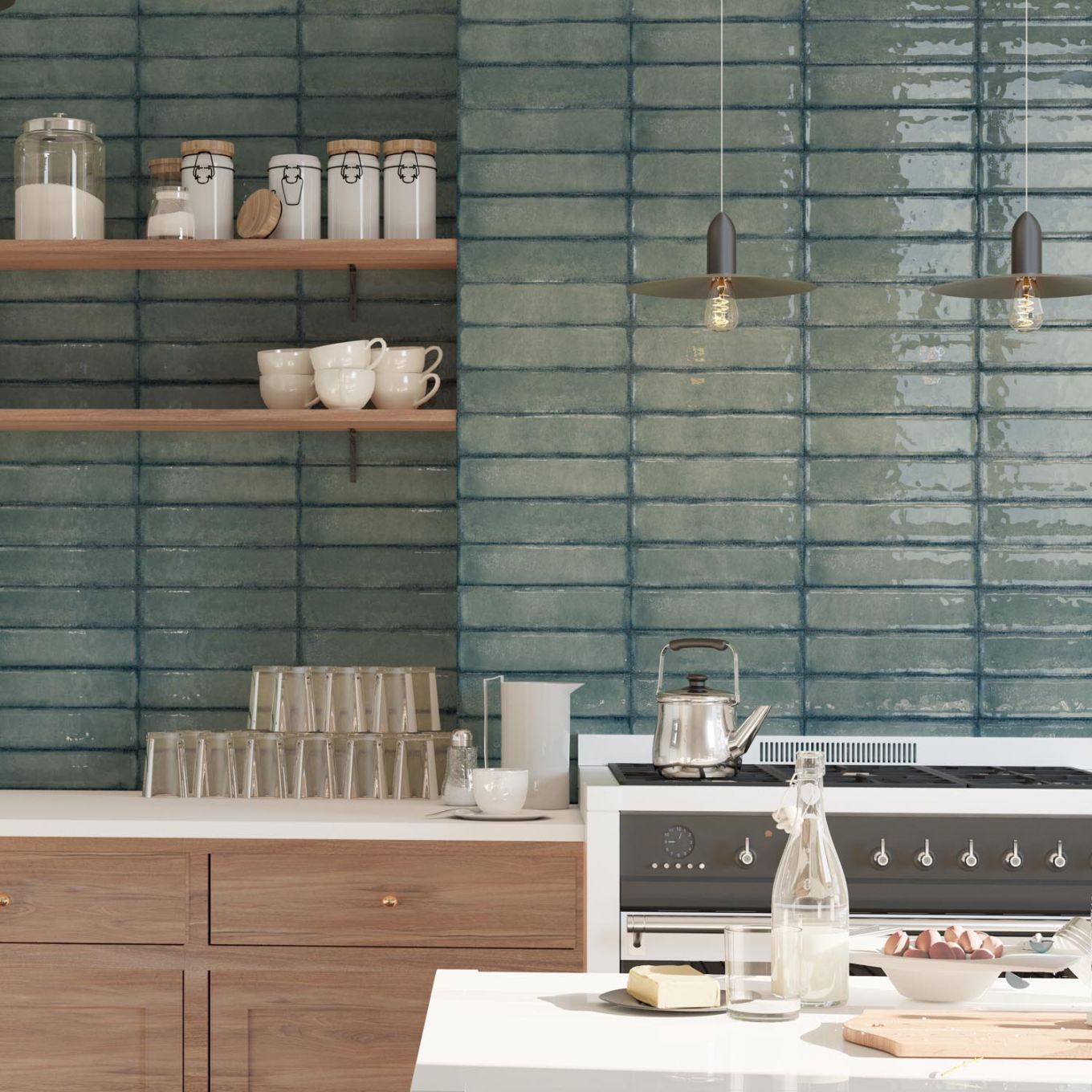 The Inca Brick Tile features a calm blue glossy finish that adds a bright and fresh look to any space.