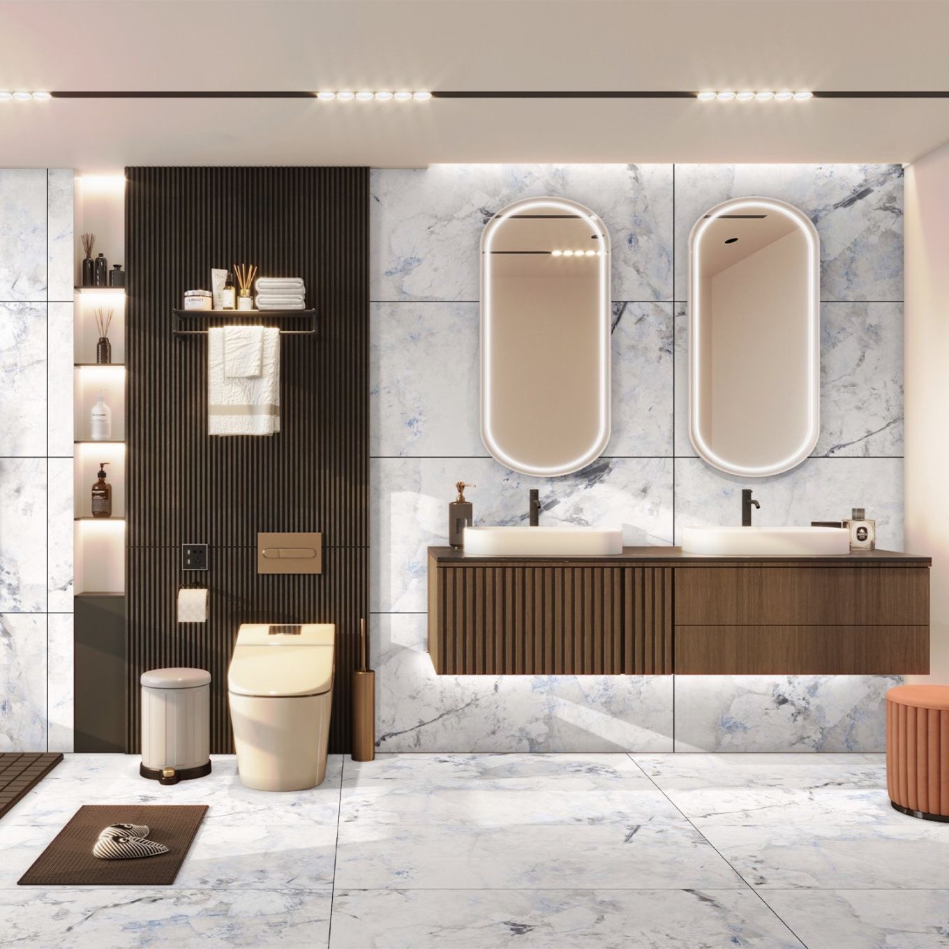 Kamino Vibe Blue Pearl Rocker Porcelain Marble Tile 1200x600mm