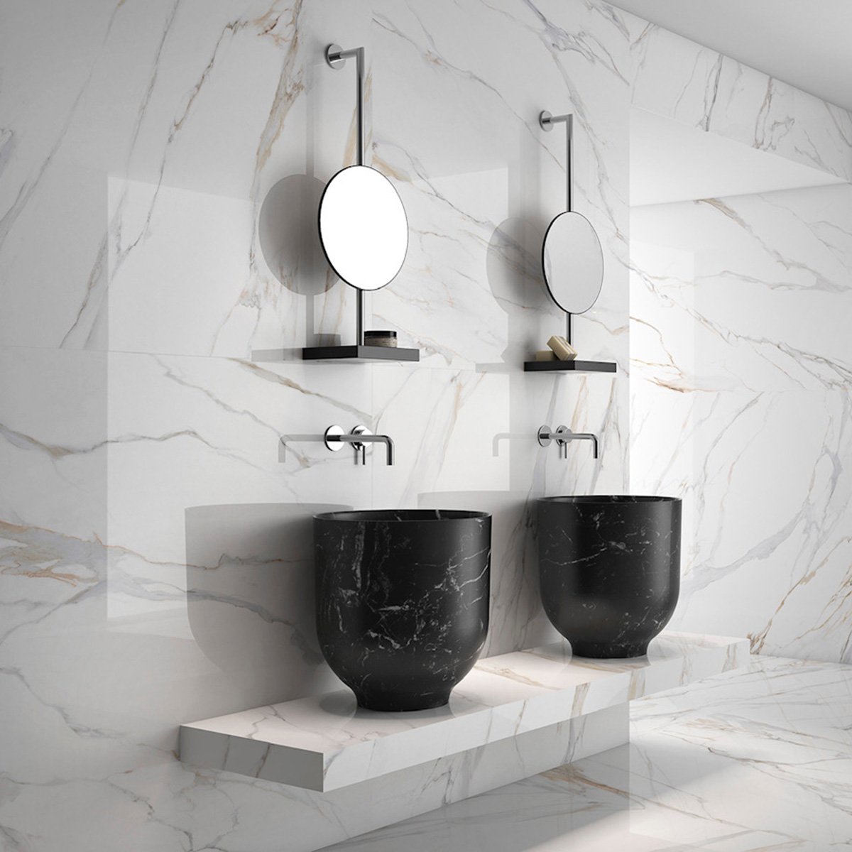 Made from porcelain at 10.5mm thick this marble tile is suitable for wall and floor application.