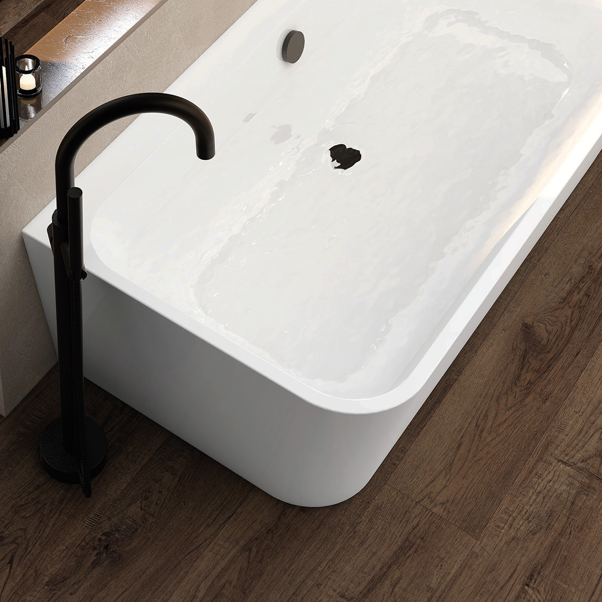 - Fully reinforced back to wall freestanding style bath (waste not included)