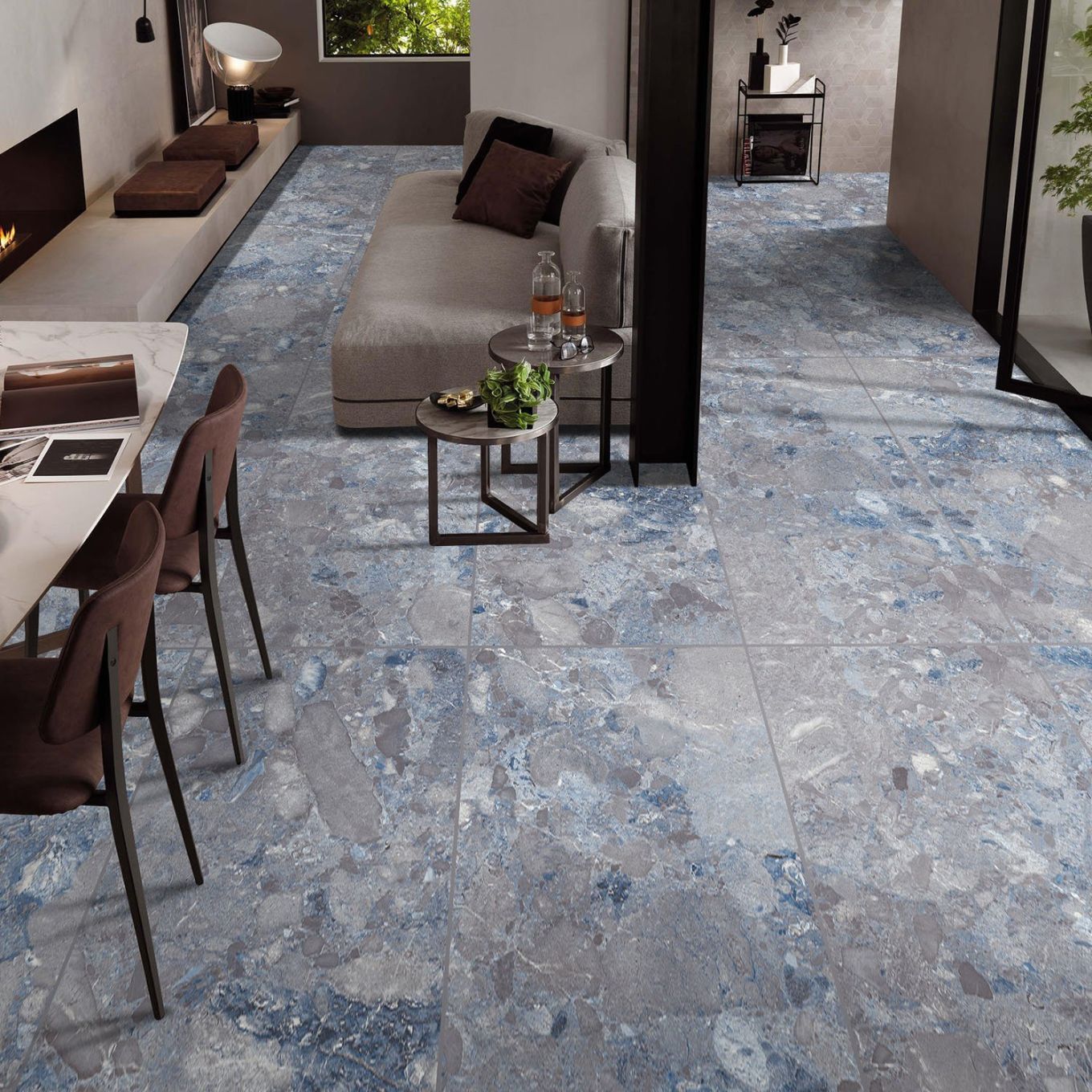 Providing beautiful marble designs with depth, colour, and individuality, the Stevenage marble-like blue tile, reminiscent of Amazonite, creates stunning areas for your luxury home. Featuring an array of tonal colours with hints of beige transform an ordinary wall into a work of art by installing these large format porcelain tiles. They're a great way to bring a sense of luxury to your home while also being low maintenance and cost effective.