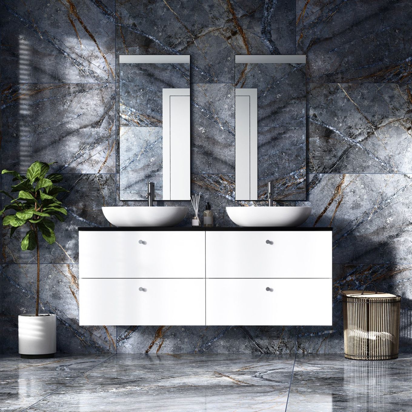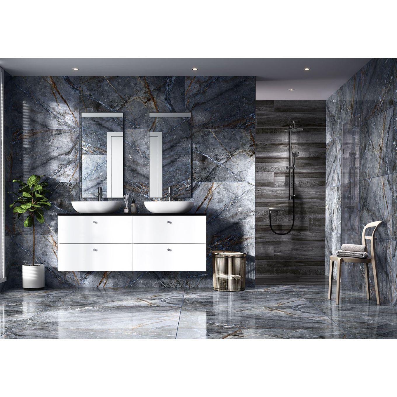 Boasting bold colour, layers of detail and a glossy finish, our Stockton Blue tiles make an impressive backdrop for your bathroom! Each one of these large format tiles has an element of drama created from multiple stone shades and hints of gold, making them truly distinctive wherever they are used. This collection of tiles will make a stunning statement in any room, create an eye-catching splashback or a unique bathroom floor, there's no doubt they'll make an impression!