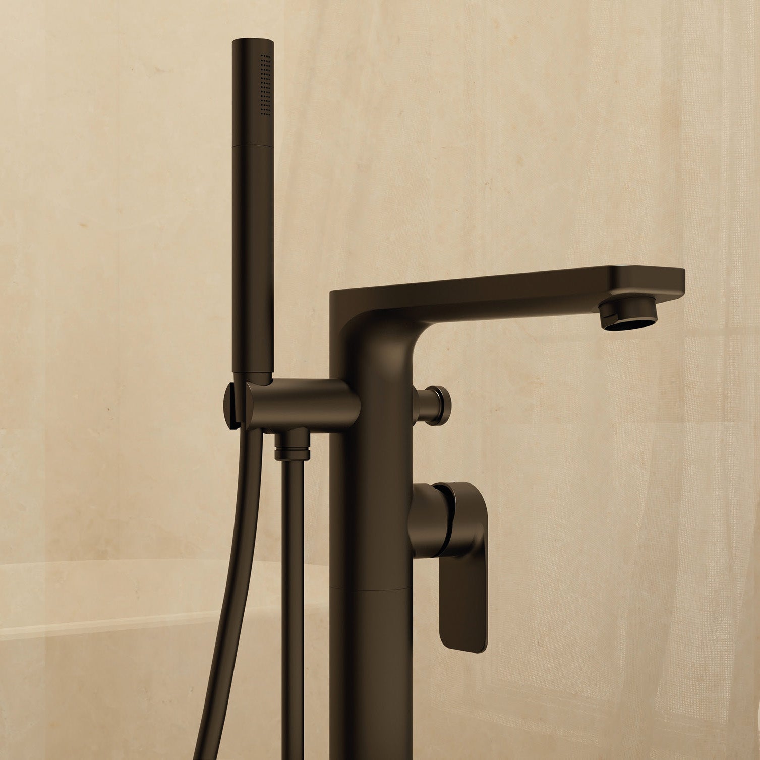 Suburb floor standing bath shower mixer in Matt Black with Hose and handset